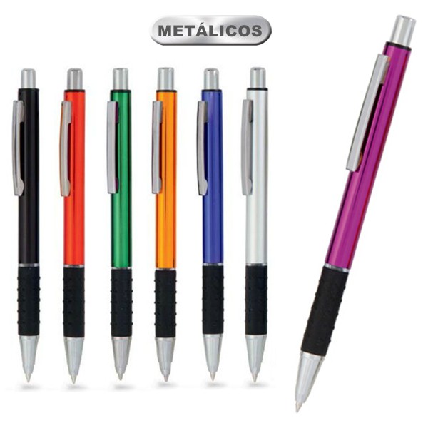 Bolígrafo de mecanismo pulsador en original diseño bicolor. Con cuerpo en aluminio de suave acabado en alegres colores. Accesorios y anillas en plateado. Con suave y cómoda empuñadura. Tinta azul.