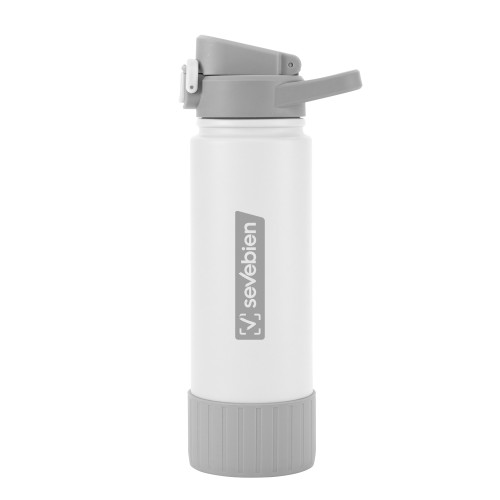 Hidratación que acompaña tu ritmo.Botella deportiva con doble pared, sellada al vacío. Interior de acero 304 y exterior de acero 201. Pintura powder coat (pintura más duradera y resistente a la corrosión y el paso del tiempo). Tapa plástica a rosca con anillo de silicona combinada con tapa rebatible a presión y traba de seguridad antiderrame. Asa flexible y resistente de TPE. Boquilla con bombilla incluida. Base con grip de silicona del mismo color de la tapa. Mantiene hasta 12 hs la temperatura de las bebidas calientes y hasta 24 hs de las bebidas frías. Medidas: Ø 7,5 cm x 26,5 cm. y ancho de tapa 11 cm.
