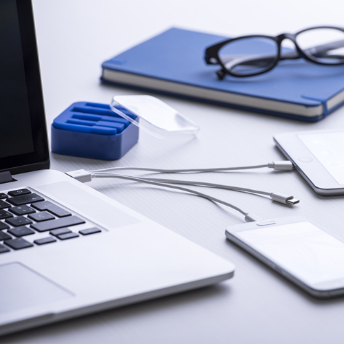 Caja cargador en variada gama de colores. Conexiones Tipo C, micro USB y Lightning. Con tapa transparente y accesorios en silicona. Conexión Micro USB, Tipo C y Lightning 5V DC 1A