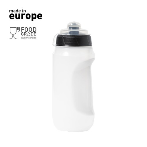 Bidón de 500ml de capacidad, hecho en PE de color blanco traslúcido. De fabricación europea, con tapón a rosca, dosificador de seguridad y capucha de cierre transparente. 500 ml
