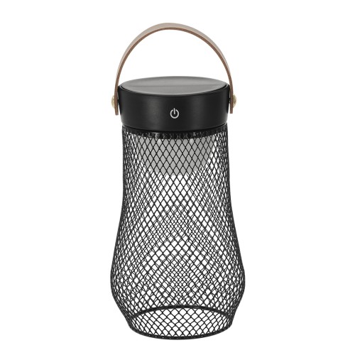 Lámpara de diseño en metal. Incluye asa superior en suave PU. Dispone de 3 modos de luz (blanca, neutra y cálida). Equipada con 24 LEDs. Ideal tanto para espacios interiores como exteriores. Botón táctil integrado para encendido, apagado y la selección del modo de luz. Equipada con batería recargable de 1.200 mAh y entrada Tipo C. 24 Ledes. 3 Posiciones de Luz. Batería 1200 mAh
